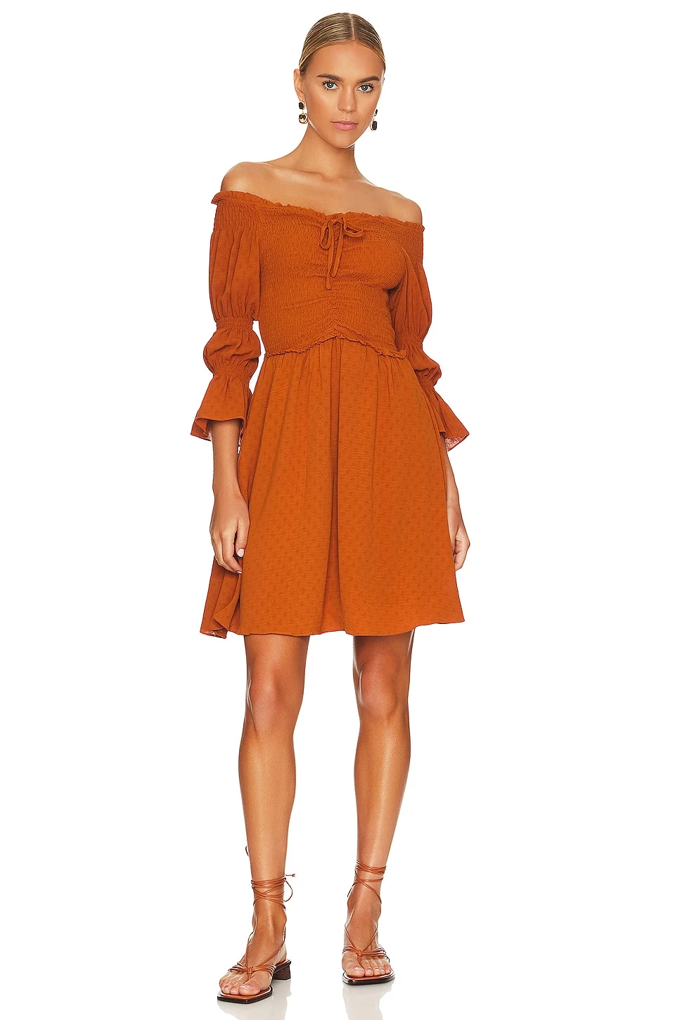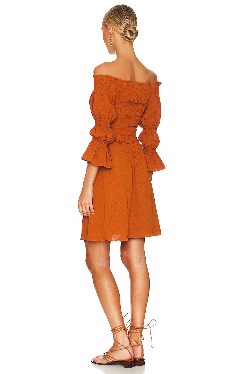 BCBGeneration ROBE COURTE SMOCKED BUBBLE SLEEVE Sugar Almond