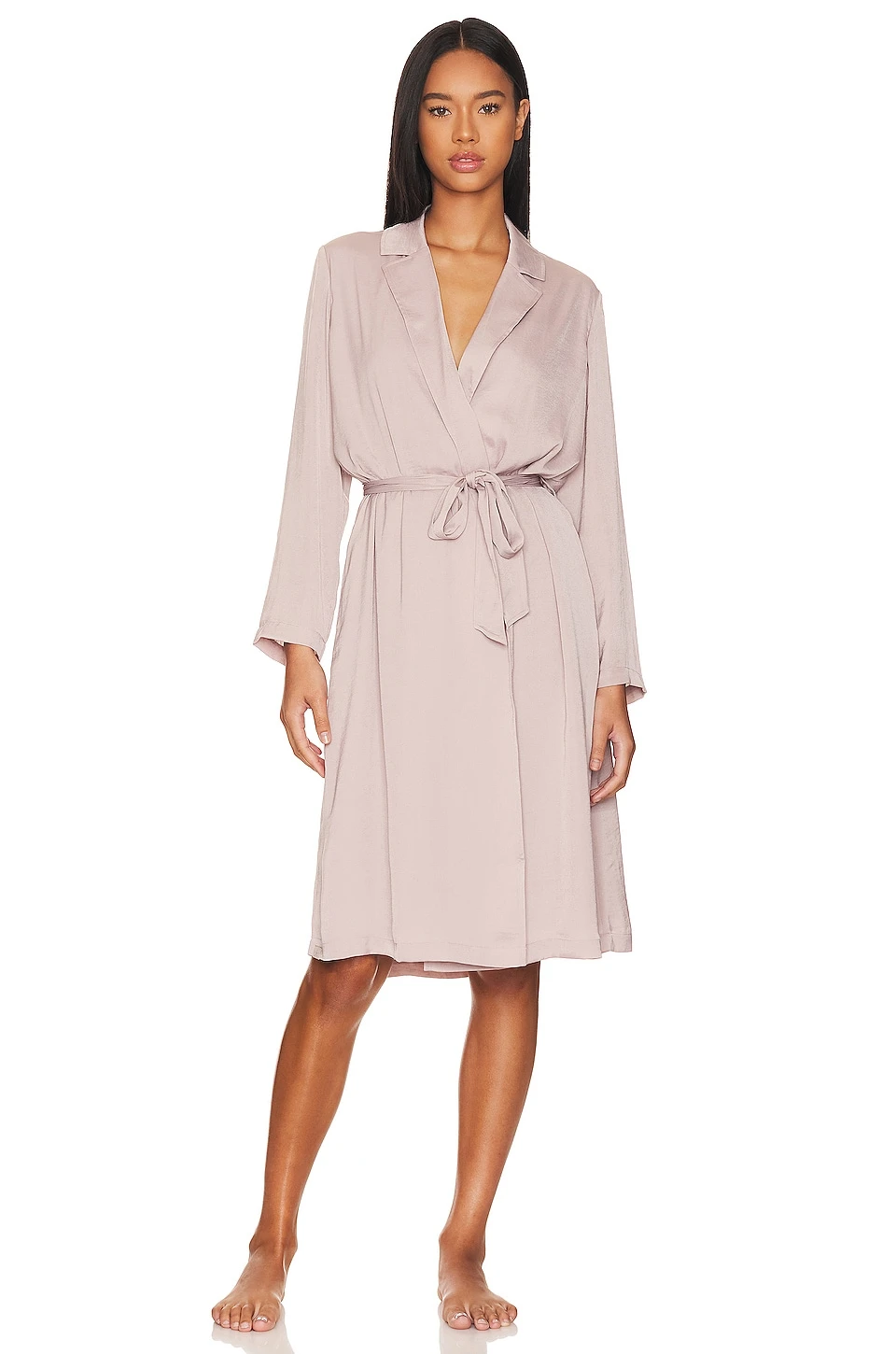 PEIGNOIR WASHED SATIN NOTCH COLLAR ROBE Feather