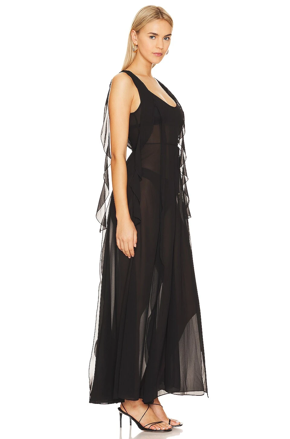 - Tissu soie légère avec détail volanté et fente couture côté