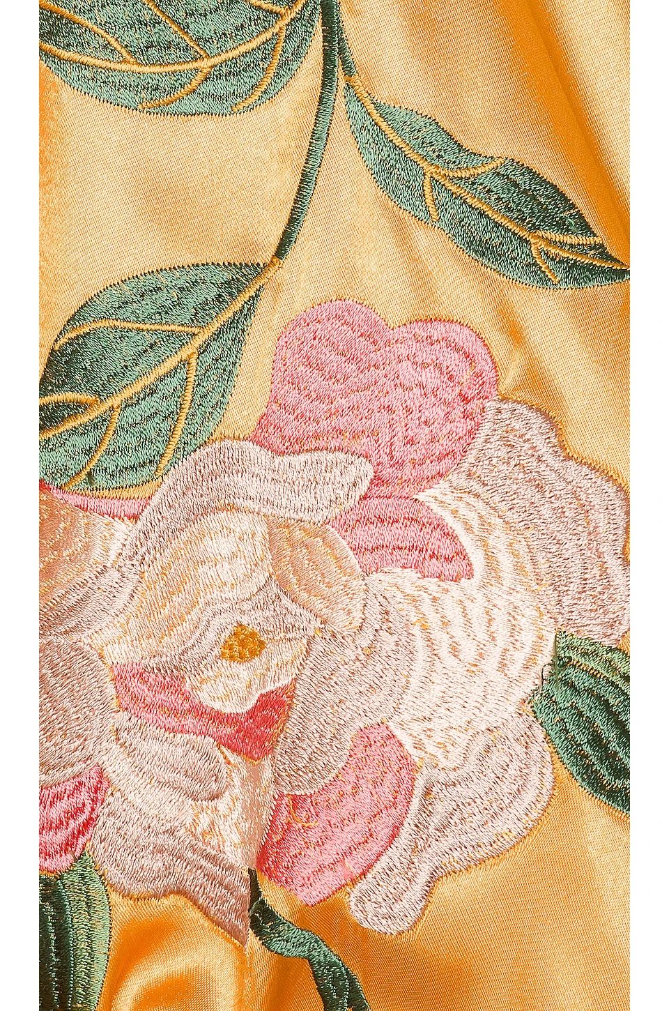 Manches forme cloche - Tissu satin brillant avec dessin floral brodé devant et dos