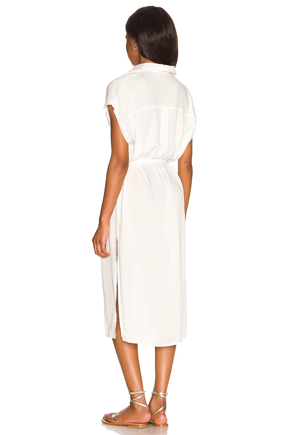 Mélange Coton. Fabriqué en Indonésie. Lavage à la main. Partiellement boutonné devant. Col chemise. Tissu twill fluide et fentes coutures côtés. Revolve Style N° INDA-WD794. Fournisseur Style N° ELEMENT-SS22.