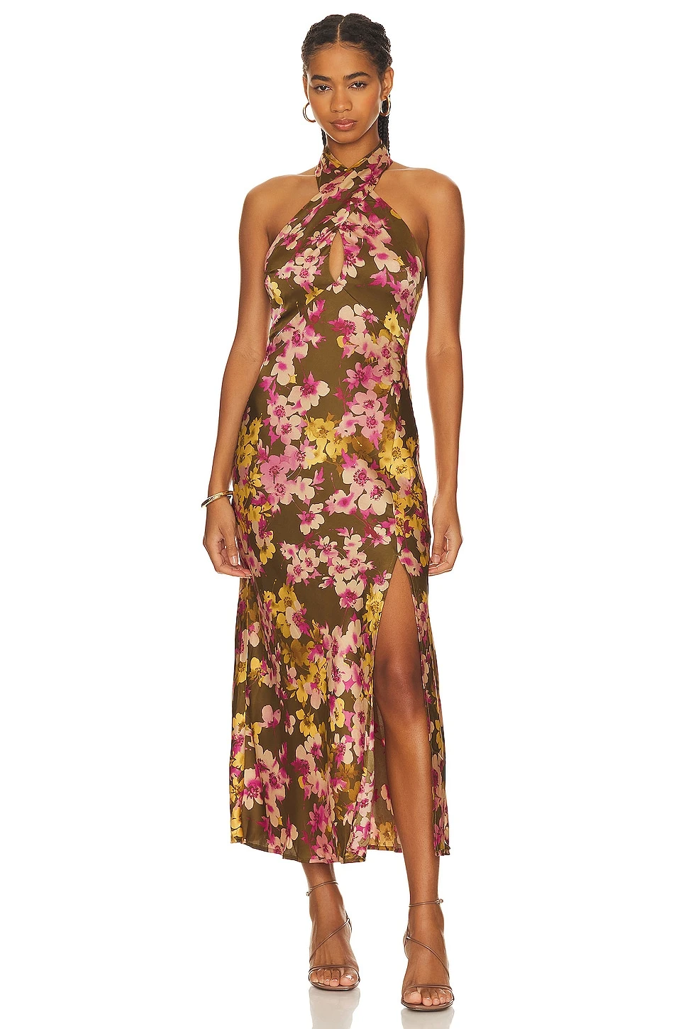 ROBE MI-LONGUE MARISSA Olive & Pink Floral