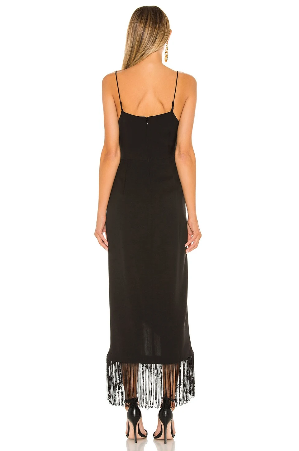 Composition: 55% viscose, 21% Tencel, 18% viscose, 6% lin.Doublure:100% viscose. Lavage à la main à l’eau froide. Partiellement doublé. Fermé par glissière dissimulée au dos. Croisé devant. Détail frangé. Importé. Revolve Style N° LCDE-WD355. Fournisseur Style N° LAD372 H19.