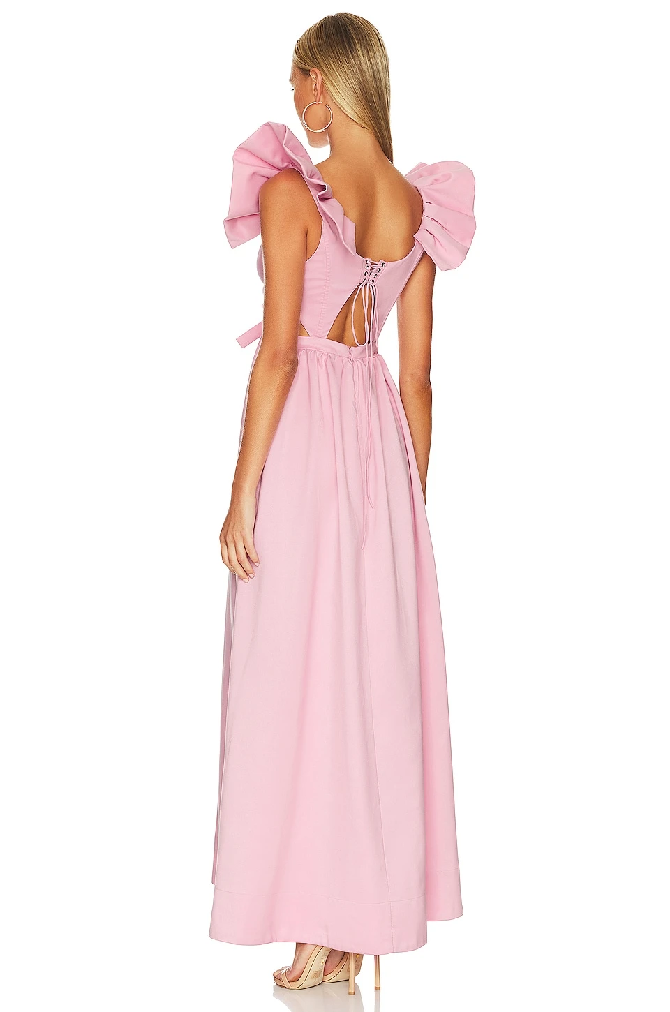 Composition: 87% polyester, 13% coton.Doublure: 98% polyester recyclé, 2% Lycra. Fabriqué en Chine. Lavage à sec uniquement. Partiellement doublé. Fermé par glissière dissimulée au dos. Dos lacé et noué. Front and back cut-outs with bow detail. Revolve Style N° FORL-WD1064. Fournisseur Style N° CD2867-HO22.