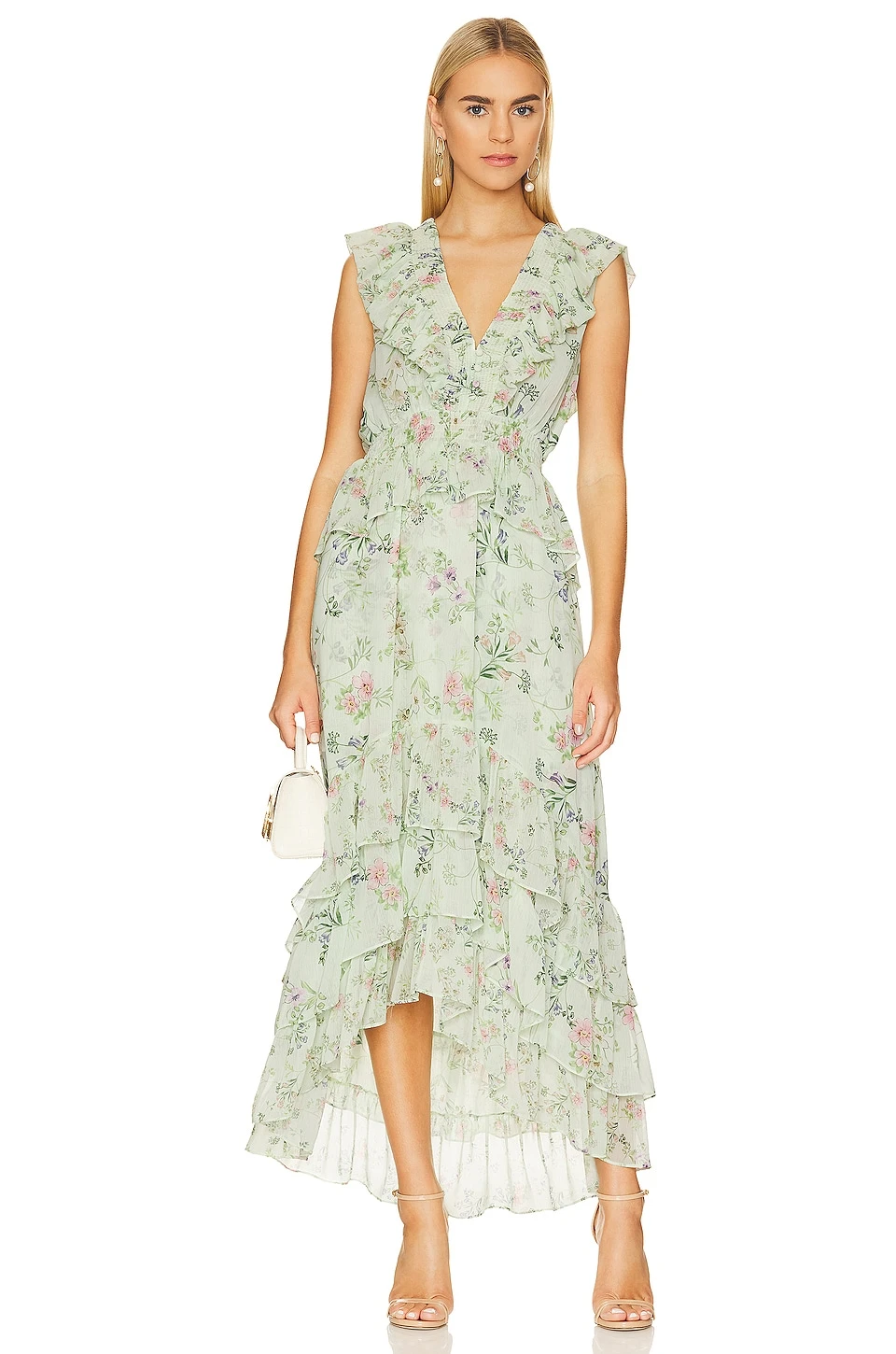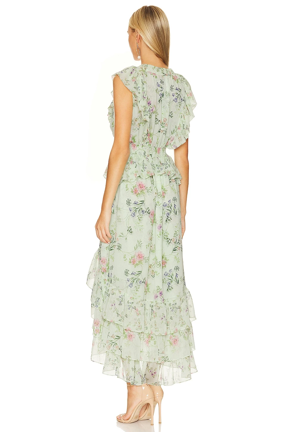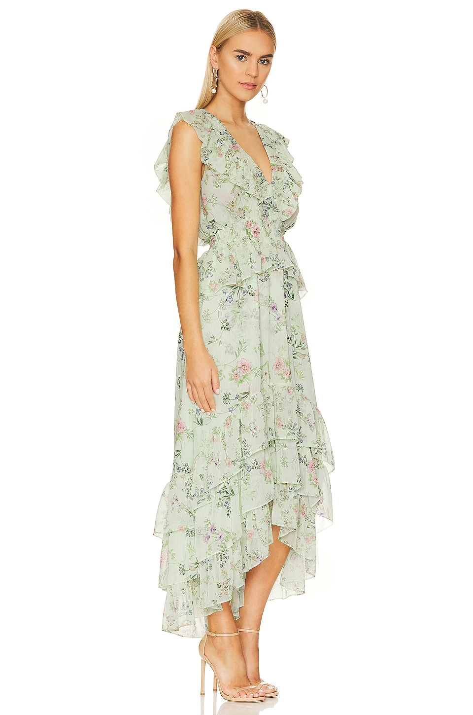 - Flowy chiffon fabric with ruffle trim