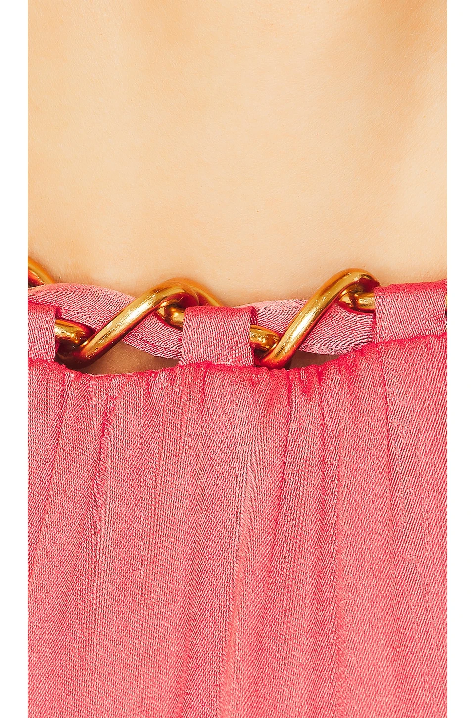 - Gold-tone chain link neckline with cut-out detail and back tie closure