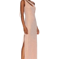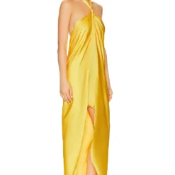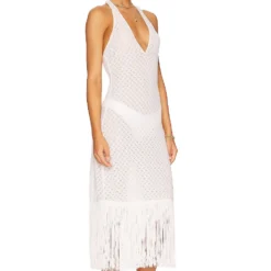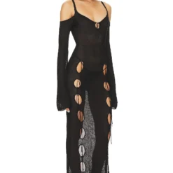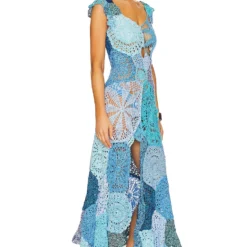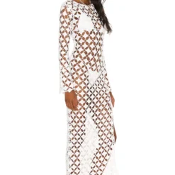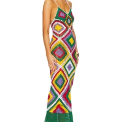 ROBE MAXI V-NECK HAND CROCHET Gold Flame