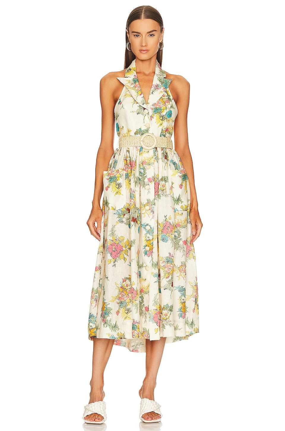 Zimmermann ROBE CHEMISE CLOVER HALTER Honey Peony Floral